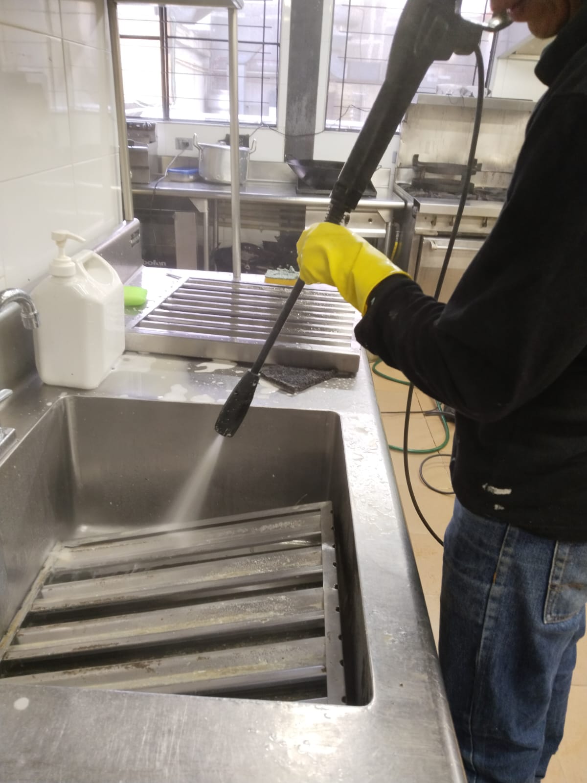 Realizamos limpieza profunda de campanas industriales y ductos de extracción utilizando maquinaria de vapor, agua caliente a presión y herramientas especializadas para remover grasa acumulada. Trabajamos con productos biodegradables que reducen el consumo de agua y energía.